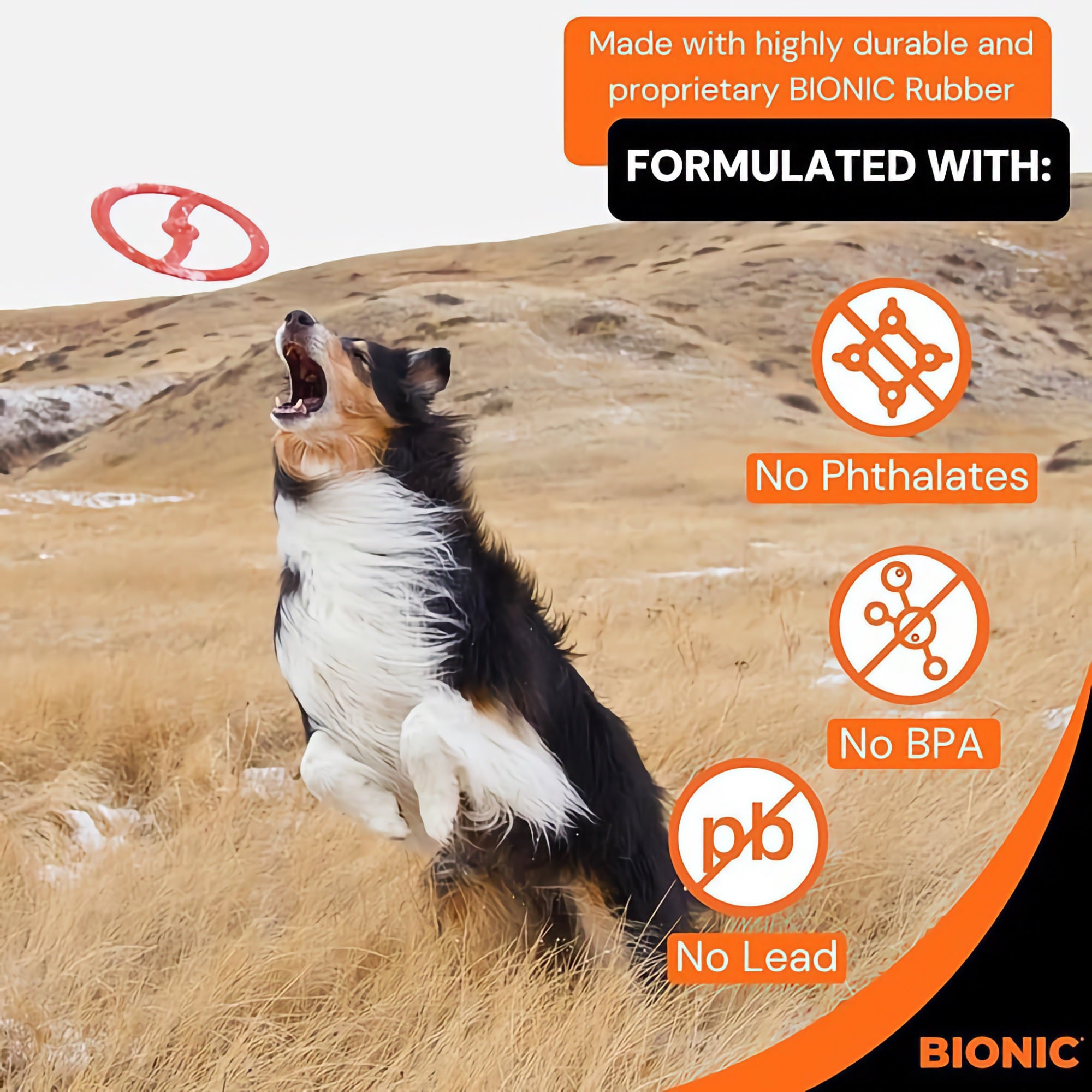 BIONIC toys are built to last and engineered with your dog's safety in mind. Made in the USA from proprietary BIONIC Rubber, each product is rigorously tested to ensure it can stand up to even the most enthusiastic chewers. With no BPA, lead, or phthalates, BIONIC offers a safe, fun, and reliable option for your dog's playtime.