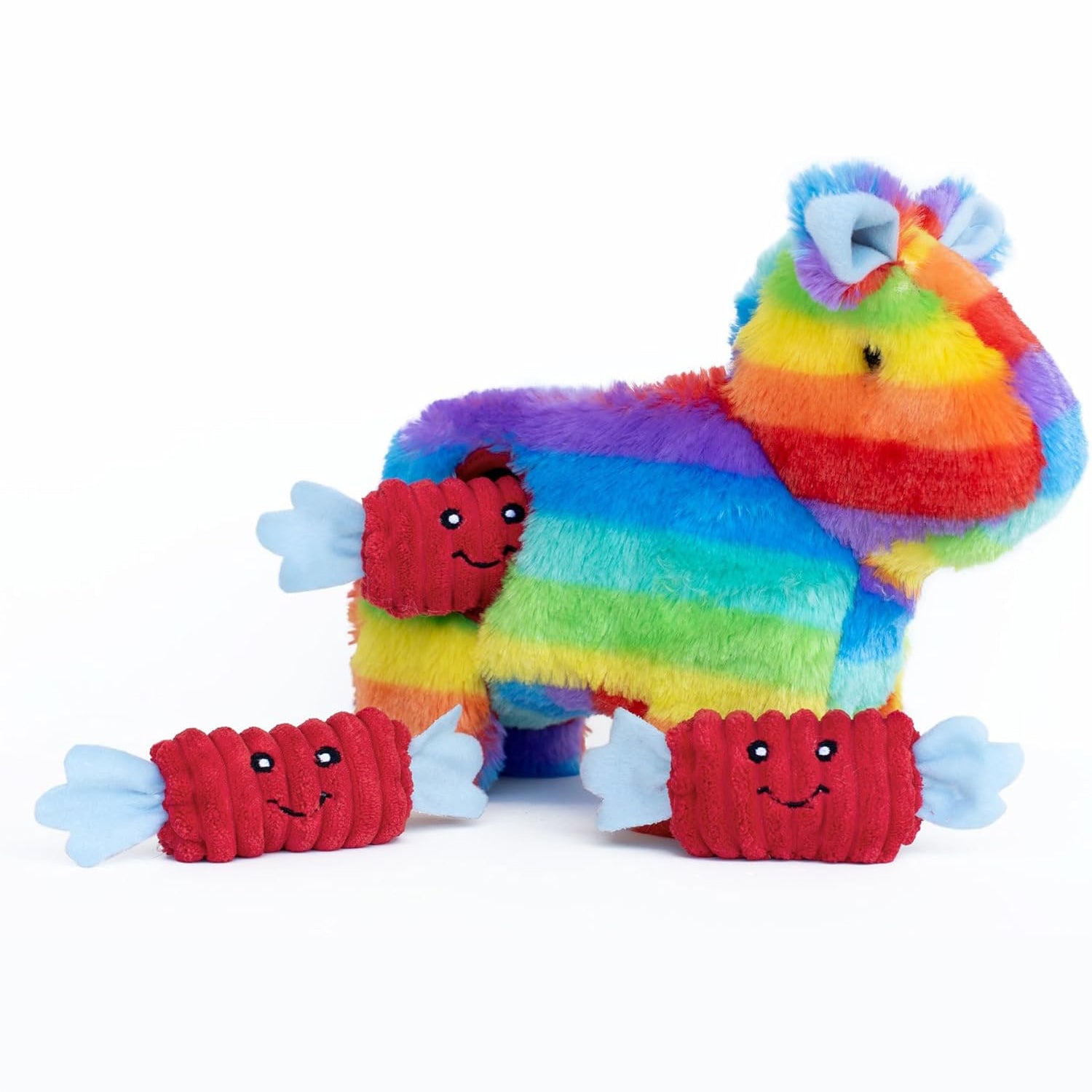 Piñata: It's a fiesta of fun! This colourful Zippy Burrow Piñata is stuffed with sweet, squeaky candy toy surprises for your pup to discover. Comes with 1 piñata and 3 small squeaky candies (1 round squeaker in each candy). 28 x 23 x 9cm