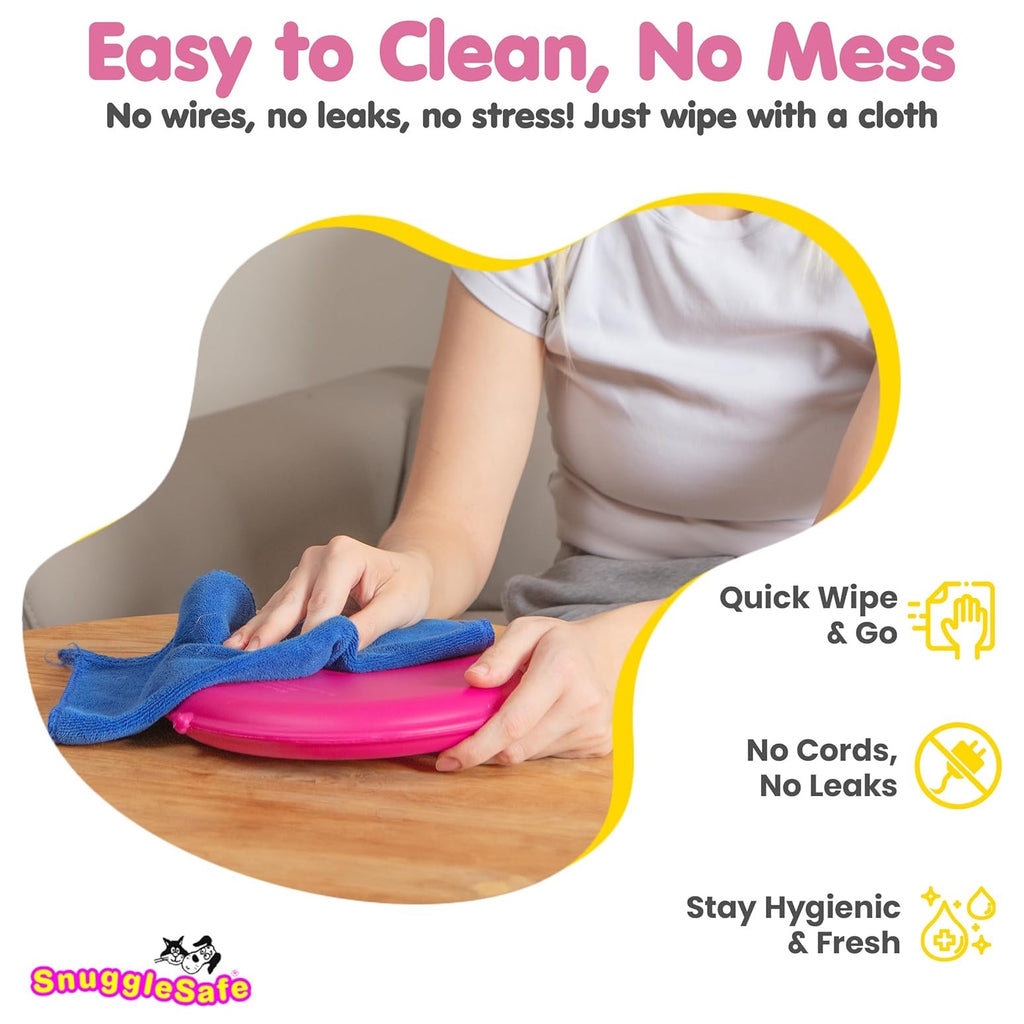SnuggleSafe will give safe, soothing warmth wherever it’s needed. The heatpad releases its warmth over a period of up to 10 hours. After approximately 3 hours, its temperature stabilises at about 50°C and remains at this level for about 5 hours before resuming the cooling process.