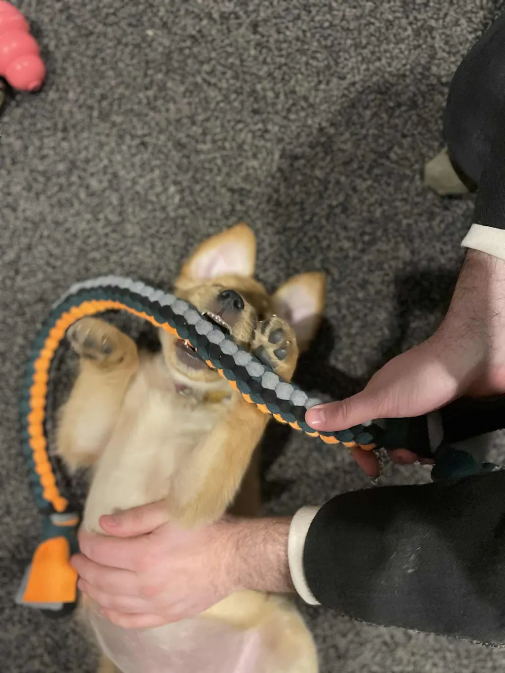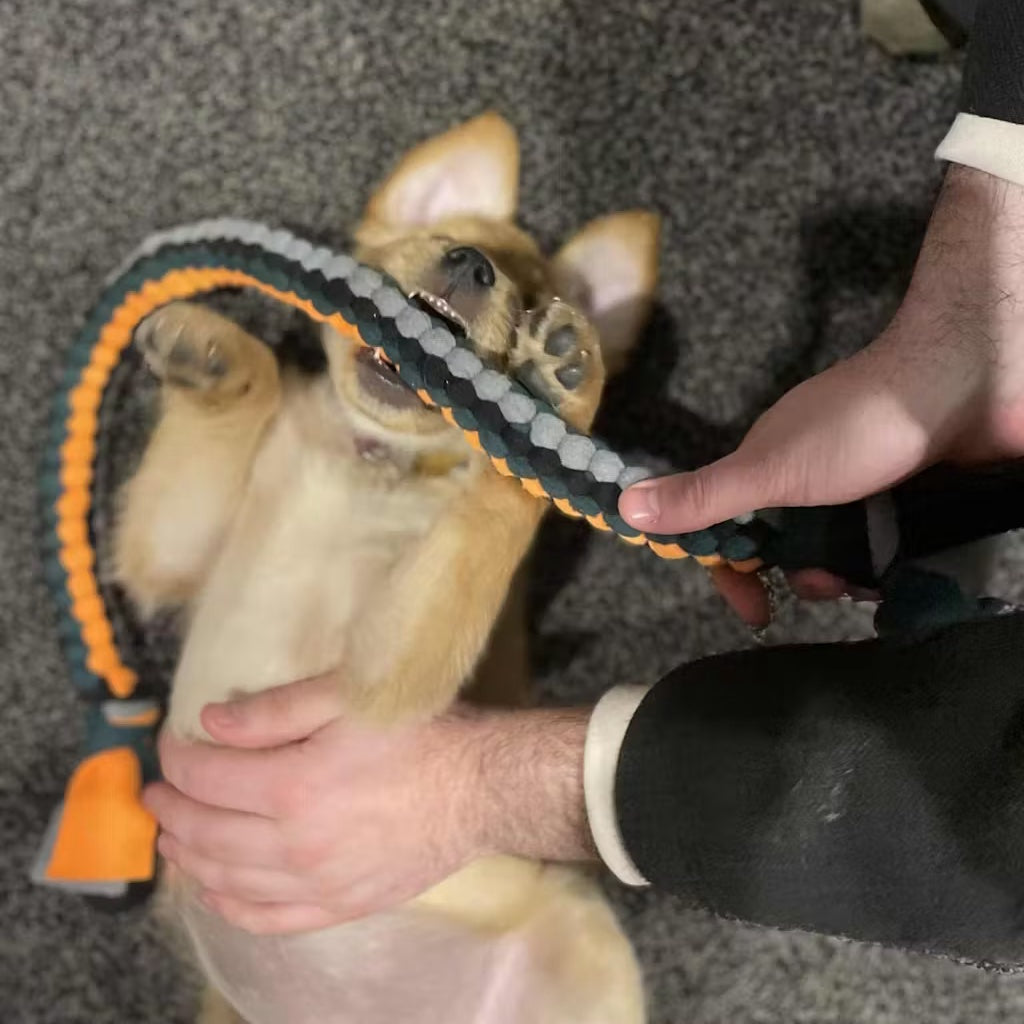 Our Puppy Tug Set stretches to great lengths and allows the pup to really sink in their teeth and grab a good hold while keeping your hands far away.