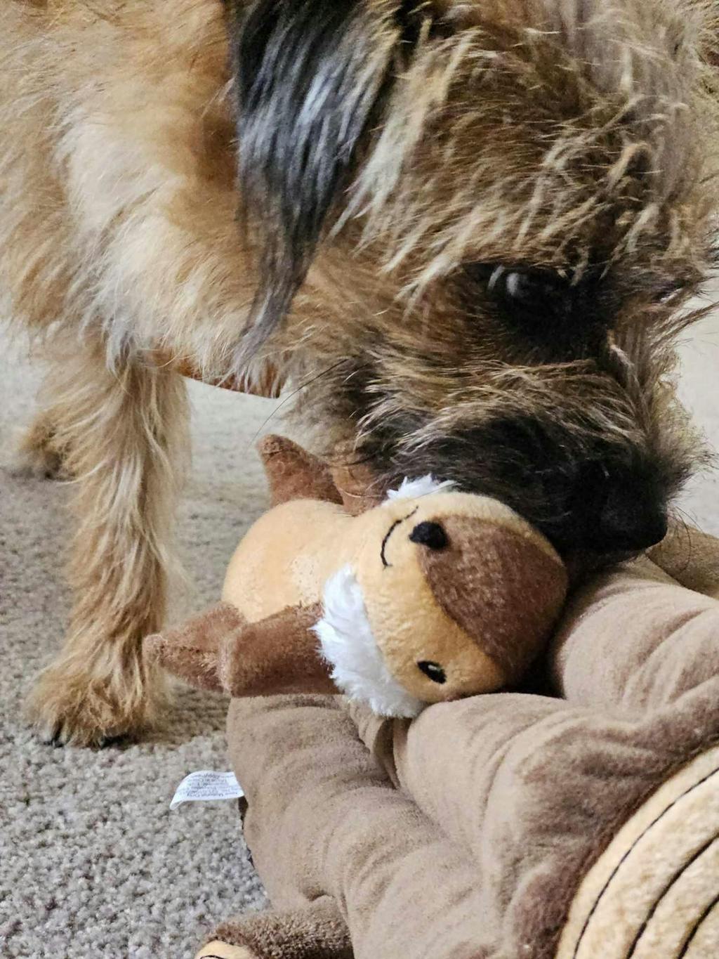 Make sure to supervise your dog with this toy proactively to show them that the game is squeaking and destuffing, not ripping and tearing. If you have a particularly soft-toy-destruction-obsessive friend, this toy may not be the best choice for them.