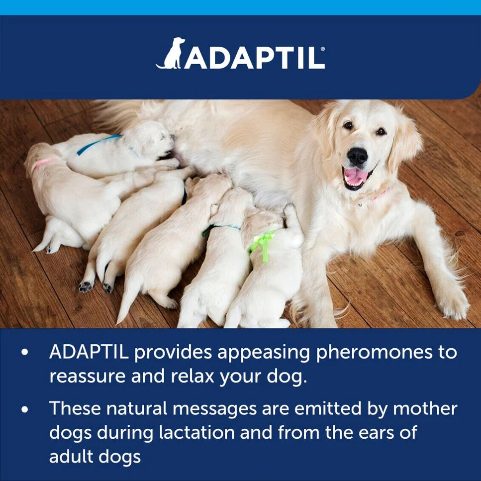 ADAPTIL replicates these pheromones, providing comfort and security to dogs of all ages. This helps dogs and puppies to feel reassured and relaxed in challenging situations, reducing signs of stress and anxiety.
