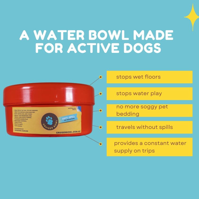 A purpose-designed, spill-reducing water bowl that keeps hydration tidy at home, in the crate, and on the road.