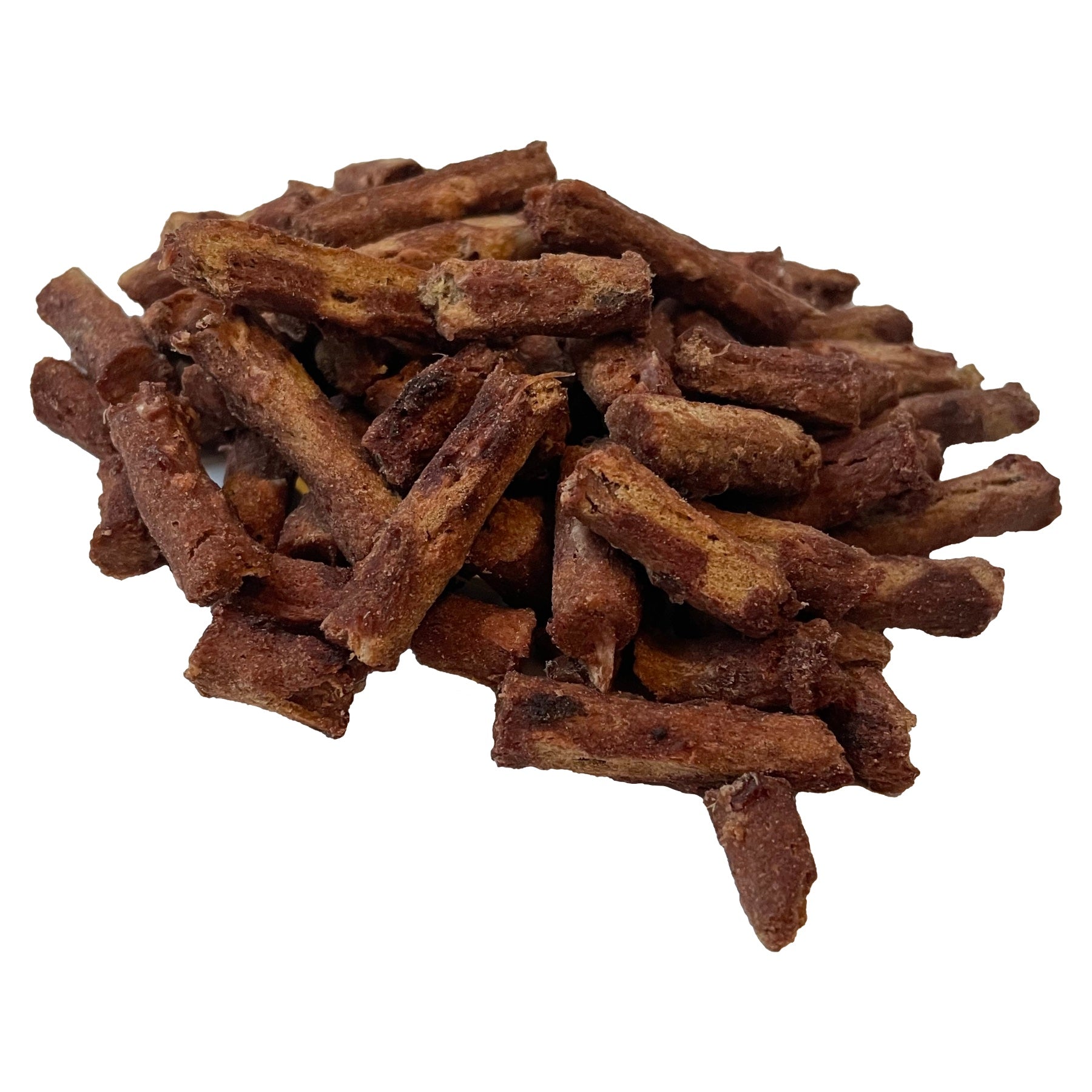 This Air Dried Treat can be used as a reward but also as a raw substitute for camping or occassional convenience. That means when used as a treat you don't need to worry if you are giving too much in a day. Perfect for all breeds and life stages, especially selective or food sensitive dogs.