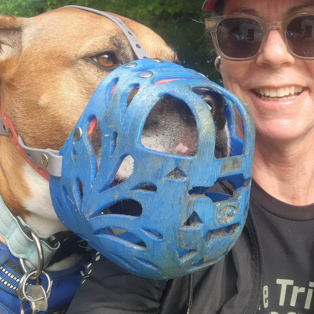 TIP: When trained properly, a dog will bring their snout into the muzzle voluntarily and won't try to take it off. They are happy wearing it. So, don’t start with forcing the muzzle on your dog, but rather start with gradual training and conditioning, see the video below.