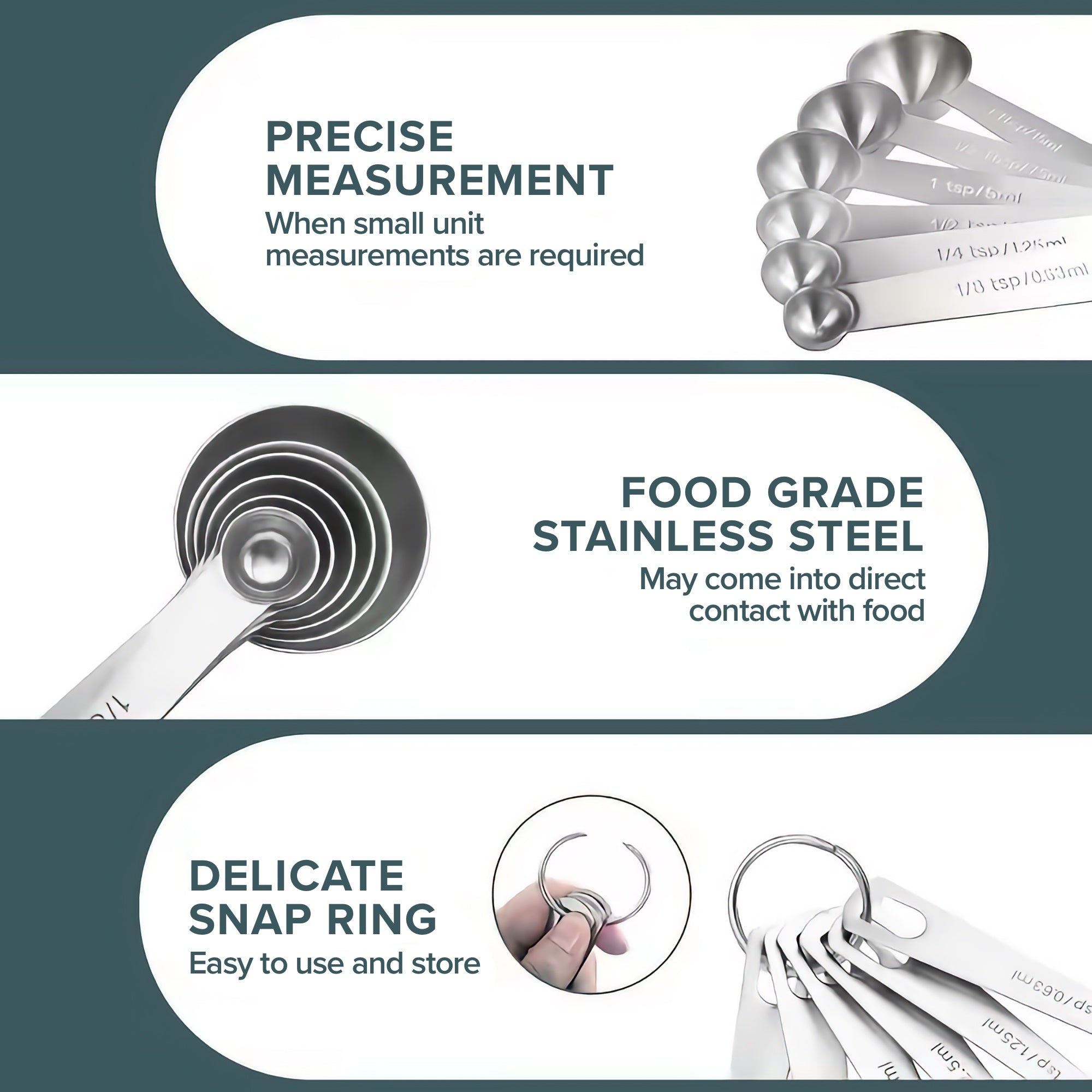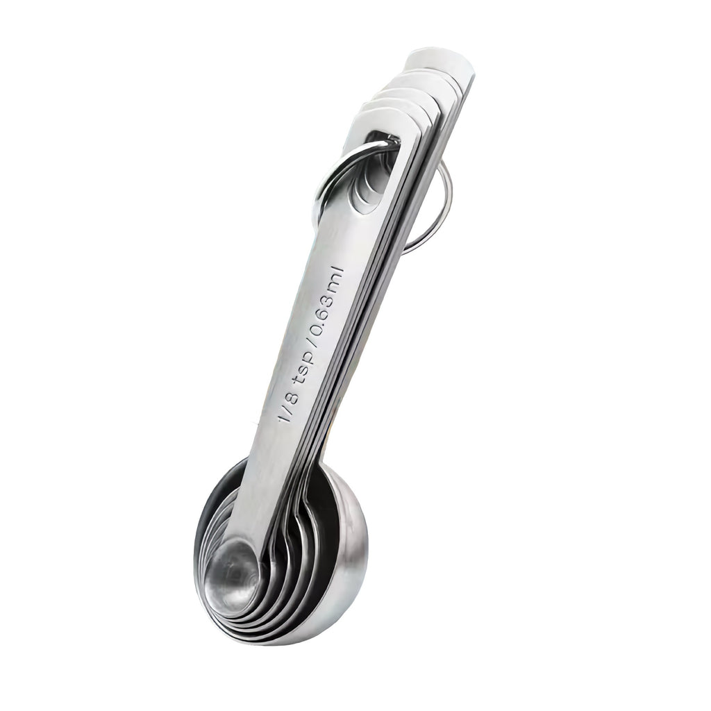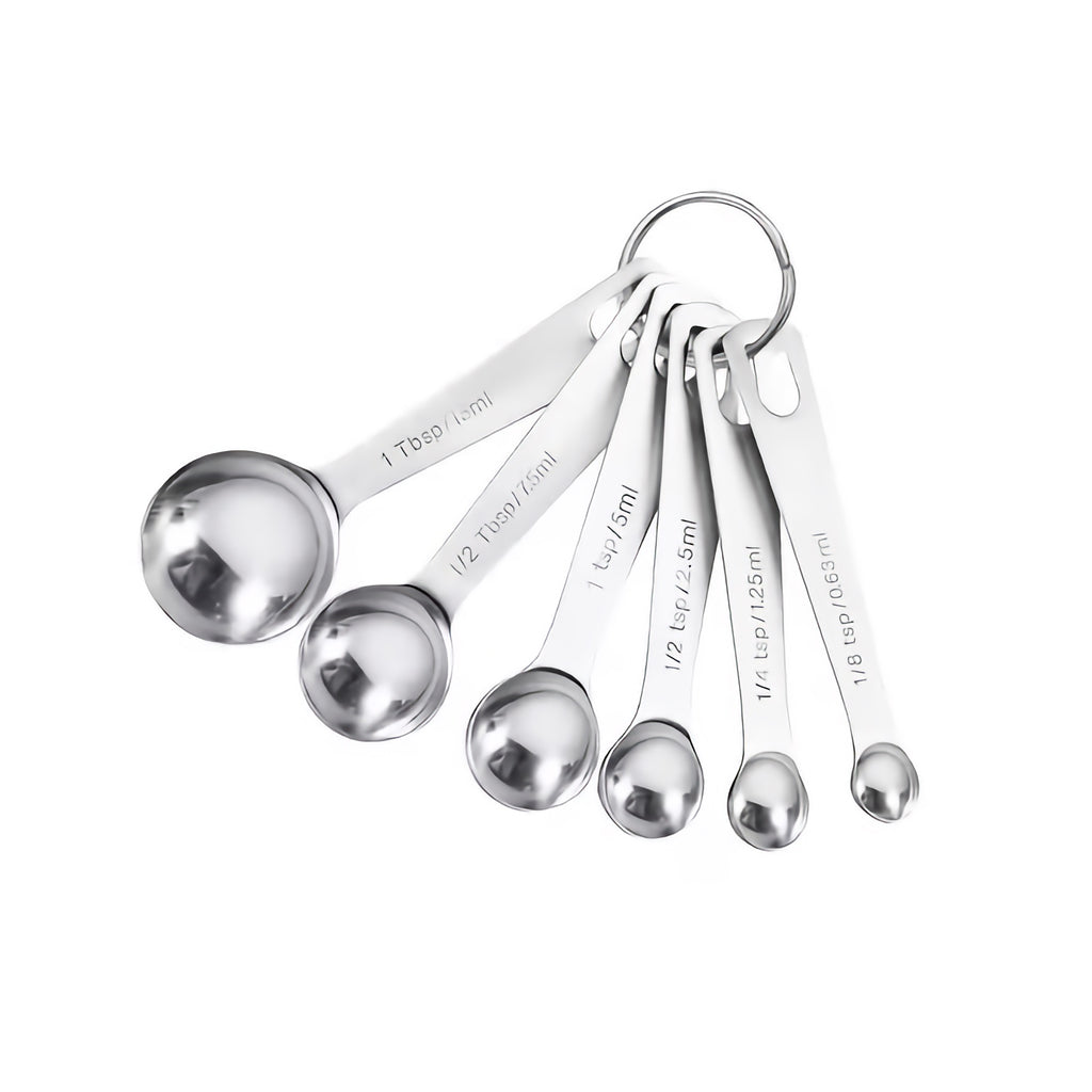 - Includes 6 sizes: ⅛ tsp, ¼ tsp, ½ tsp, 1 tsp, ½ tbsp, 1 tbsp