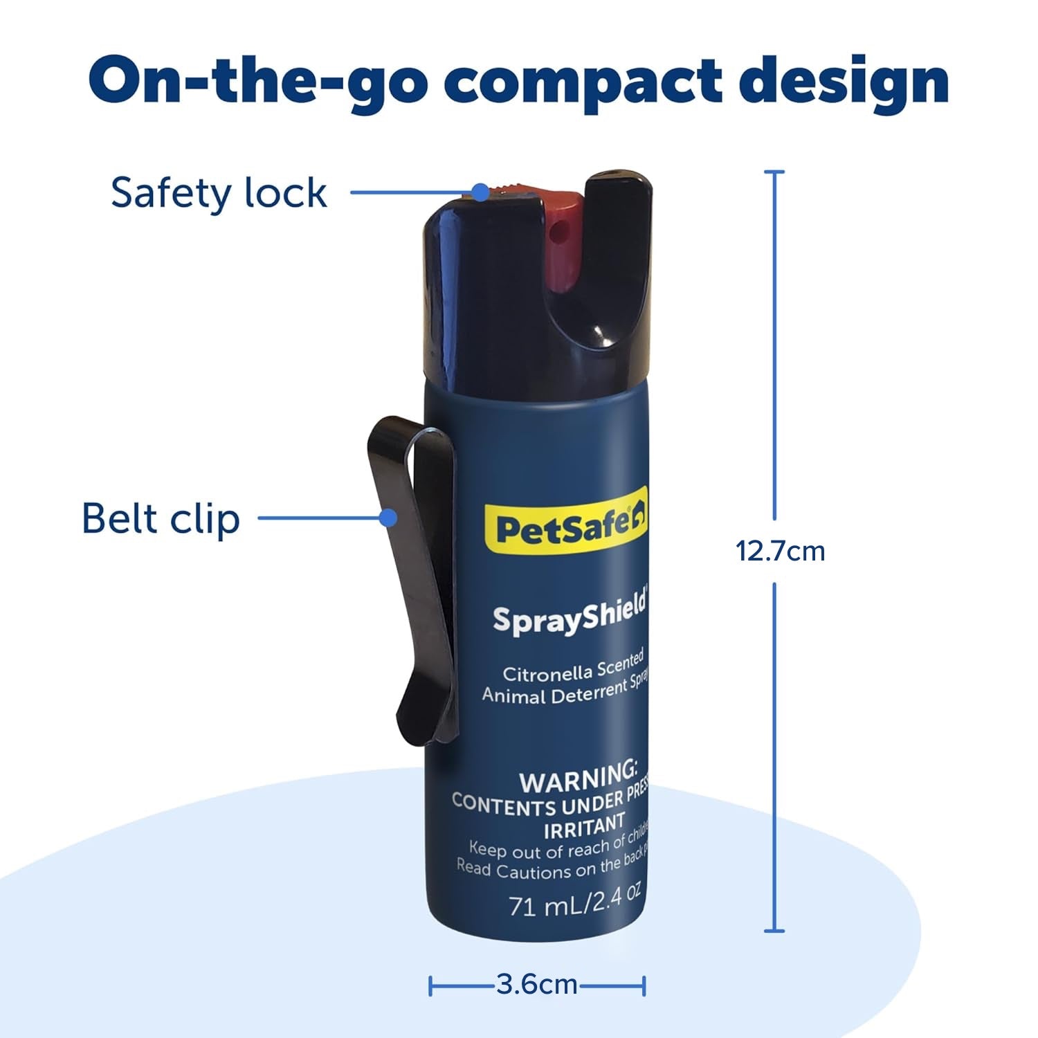 - Powerful citronella spray deters moderately aggressive dogs/animals