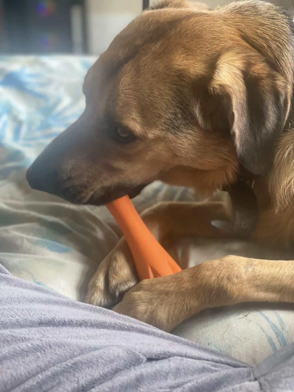 - Flexible dog bone so it's safe for dogs to catch and chew.